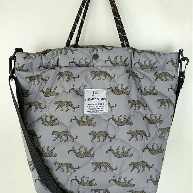 KiU FREAK'S 키우 패디드 데드 토트백 발수 레오파드 그레이