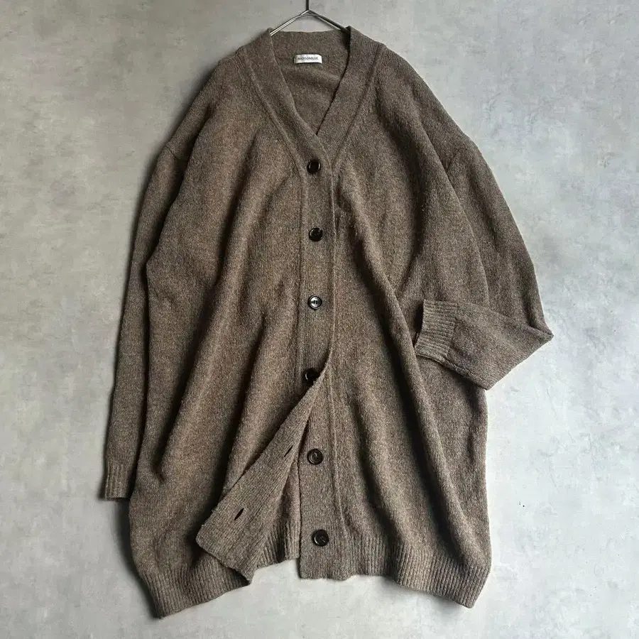 매디슨 블루 롱 가디건 V넥 로고 각인 버튼 긴팔 베이지