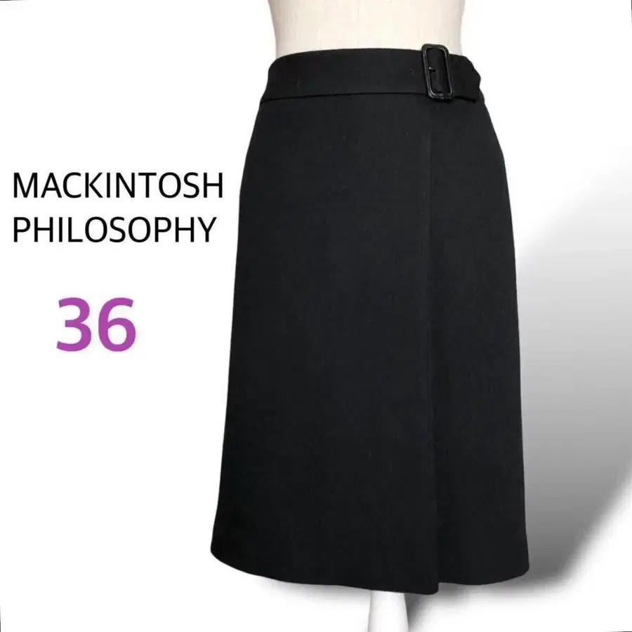 매킨토시 필로소피 울 무릎 기장 스커트 36 블랙