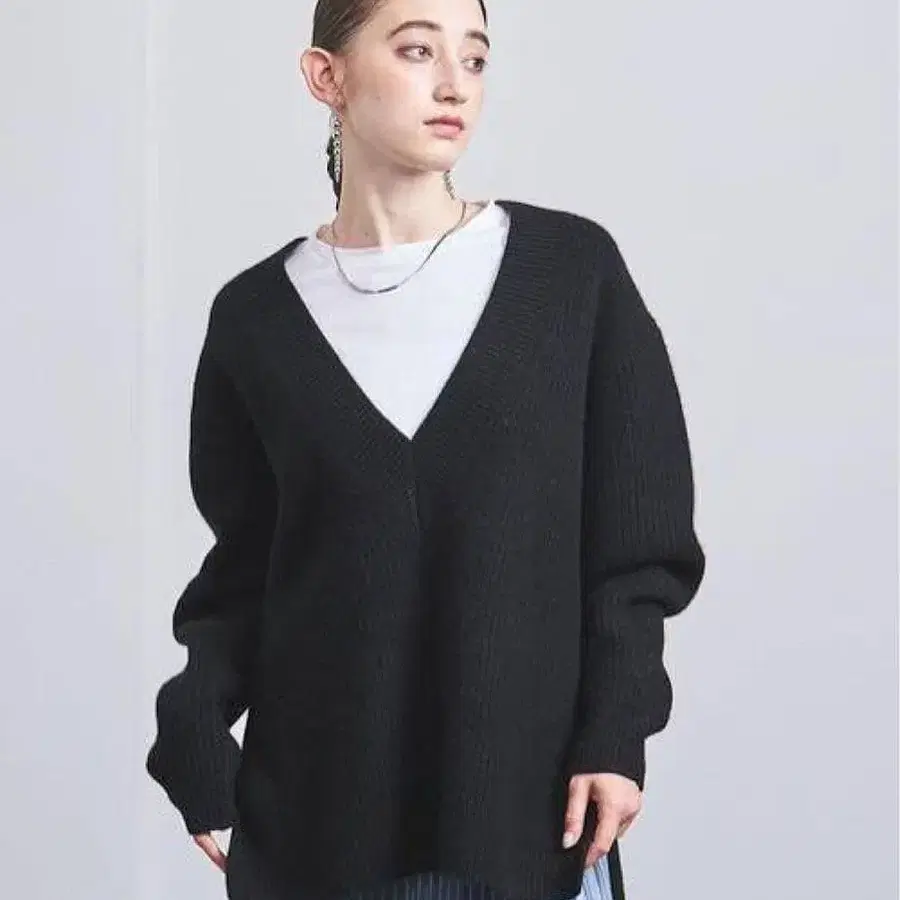 유나이티드 애로우즈 아제 딥 V넥 니트 스웨터 블랙 검정