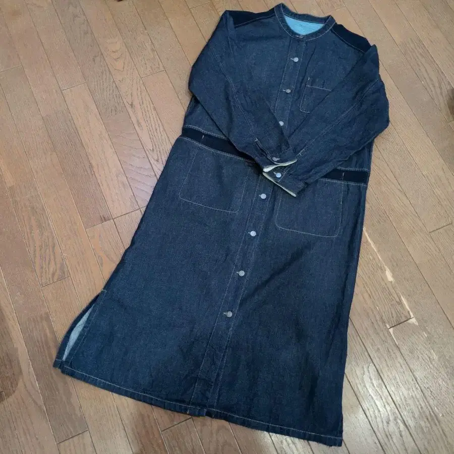 컴시즘 오니기리 데님 컬러 셔츠 롱 원피스