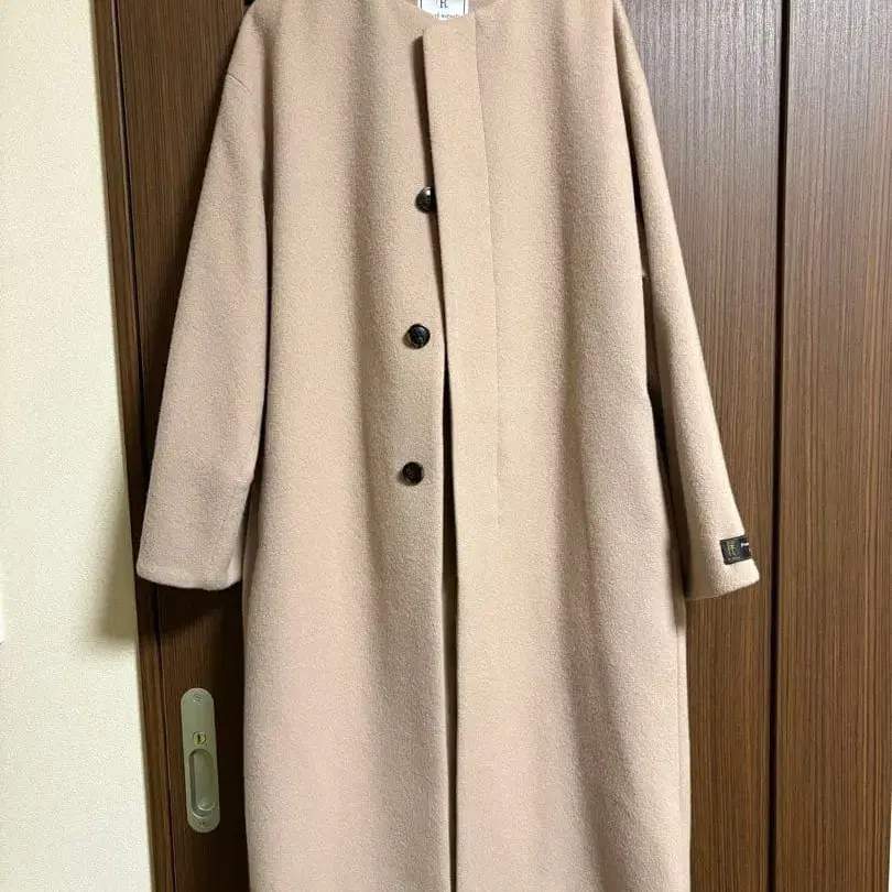 로페피크닉 베이지 노카라 울 코트