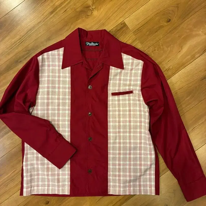 볼링 셔츠 체크 무늬 절개 로카빌리 M