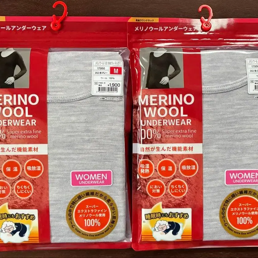 워크맨 여성용 메리노울 긴팔 크루넥 M 사이즈 그레이 2장 세트