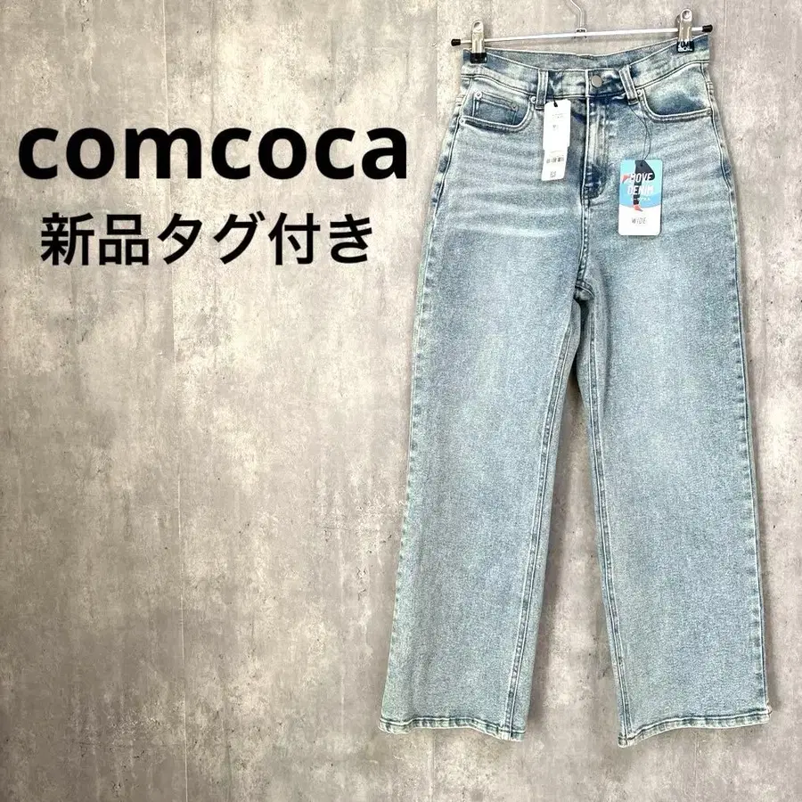 택 포함 새상품 comcoca 무브 데님 와이드 스트레치 워시 블루