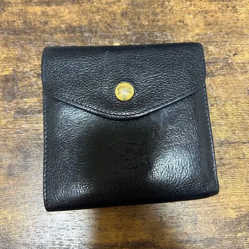 IL BISONTE 블랙 가죽 이단 접이식 지갑