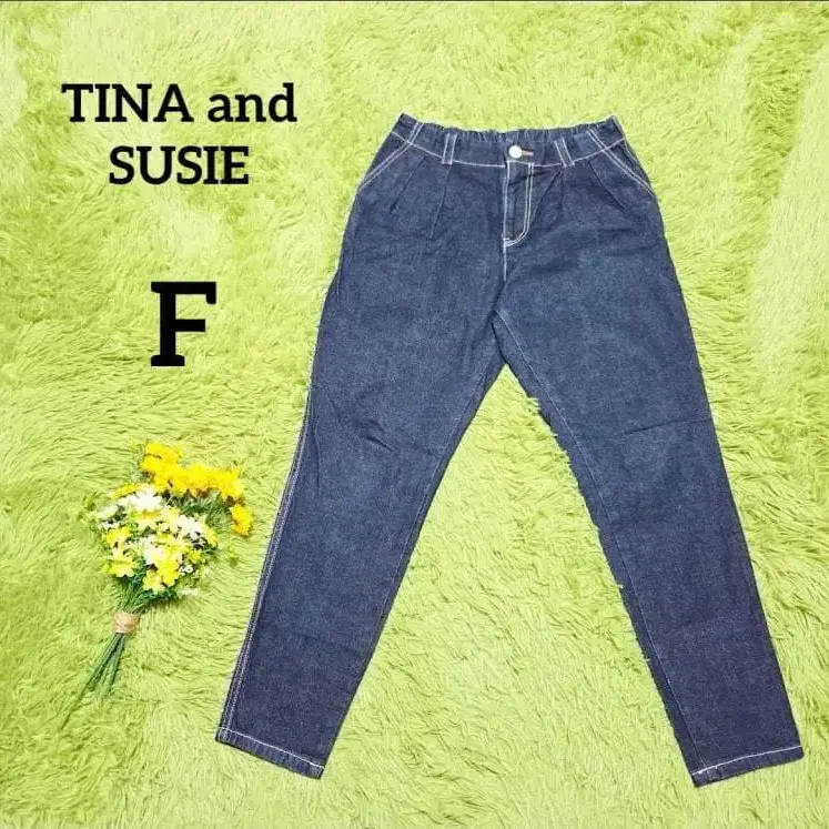 [티나앤수지] 팬츠 F 네이비 허리밴딩 데님 테이퍼드