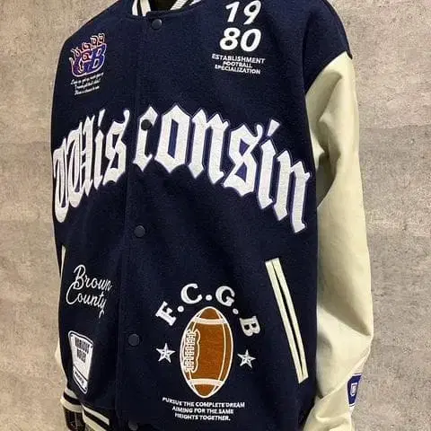 PU 절개 아메카지 바시티 자켓 네이비 L 빅 실루엣 아메카지 자수