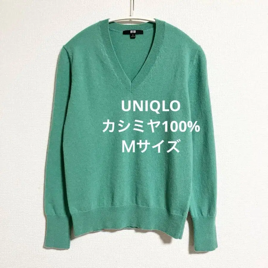 유니클로 캐시미어 100% V넥 스웨터 그린 M