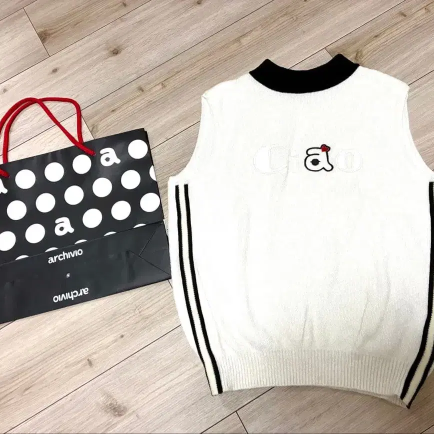 archivio Ciao 자수 슬리브리스 니트 베스트