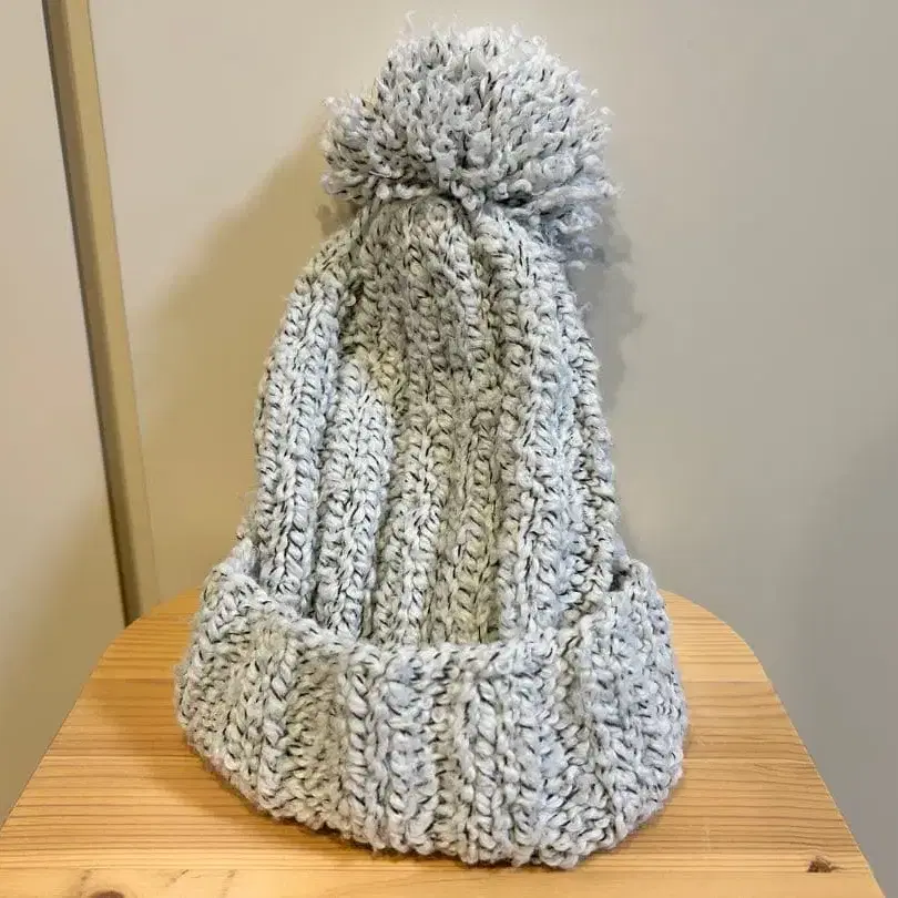 라이트 화이트 그레이 폼폼 포함 니트 모자