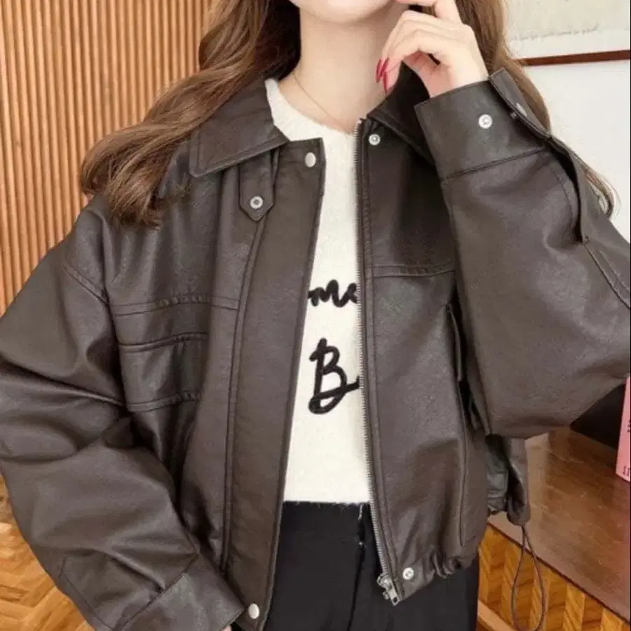 moment+ 2WAY 컬러 숏 기장 인조 가죽 블루종 M 사이즈