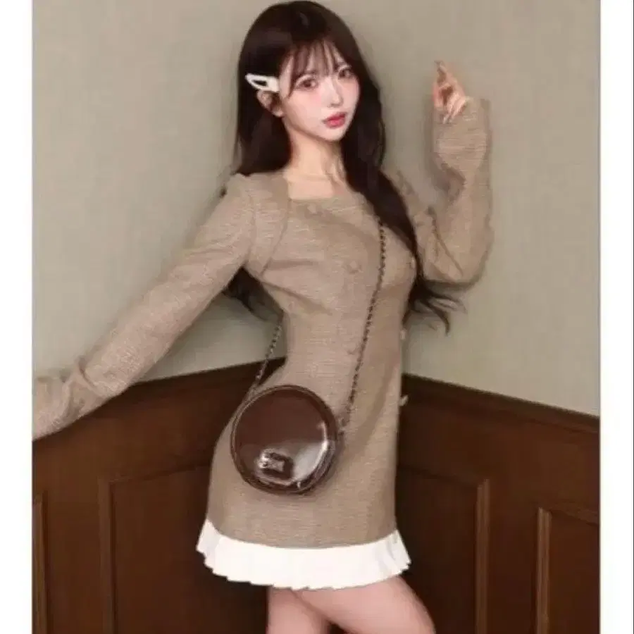 플리츠 도킹 트위드 미니 원피스