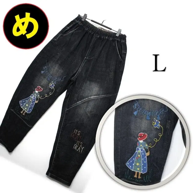 앞뒤 아래쪽에 귀여운 자수가 놓여 있어 튜닉이나 니트와 궁합이 좋습니다.