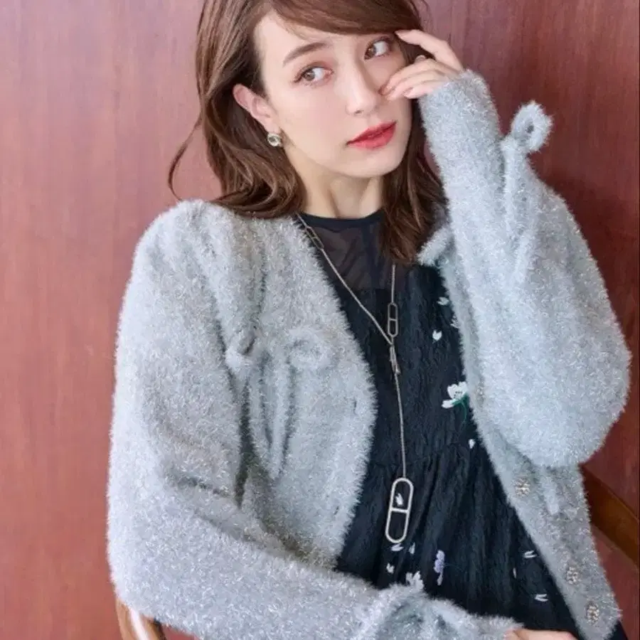 체스티의 가디건입니다. 색상은 그레이, 사이즈는 프리 사이즈입니다. 시착 없는 택 포함 새상품이며, 공식몰에서 구매한 정품입니다. 섬세한 빛을 발하는, 지금 기분에 딱 맞는 가디건입니다. 라메 몰로 장식한 리본 모티브가 어른스러운 귀여움을 돋보이게 해줍니다. 깔끔한 V넥 라인과 컴팩트한 기장감, 볼륨감 있는 숄더 디자인 등 입기만 해도 균형감 있게 완성되는 실루엣도 코다와리 포인트입니다. 화려한 소재감이 다가오는 시즌에 잘 어울리는 아이템입니다. 고급스러운 광택이 있는 라메 니트를 채용했습니다. 만지고 싶어지는 복슬복슬한 털도 특징입니다. 반짝이는 플라워 모티브의 비쥬 버튼도 포인트입니다. 소매의 리본은 탈부착 가능하여, 상황에 맞춰 어레인지가 가능합니다. 집에서 손세탁 가능하므로, 관리의 용이성도 매력입니다. ============================ 세탁 방법: 손세탁 가능 안감: 없음 비침: 없음 신축성: 있음 광택감: 있음 원단 두께: 보통 ============================