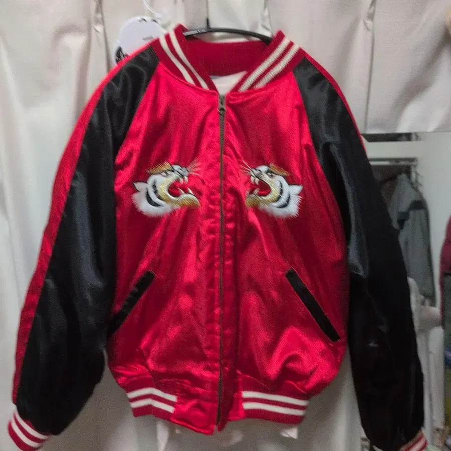 프린스 상회 빨간색 새틴 스카잔 호랑이 자수