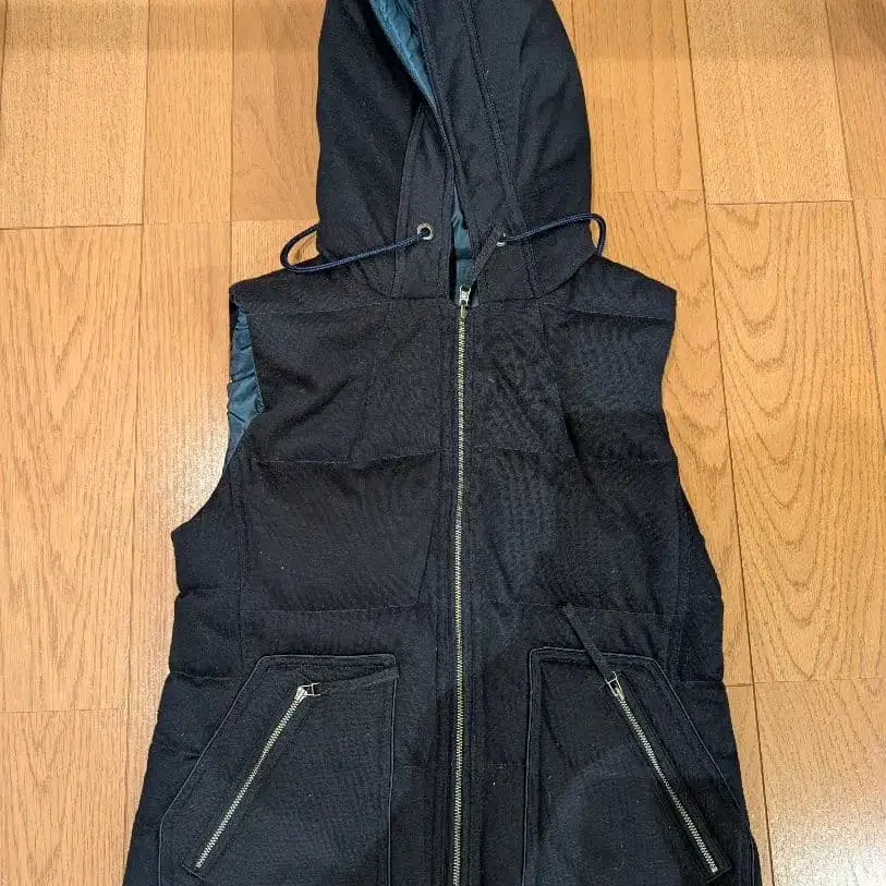 후드 부착 네이비 퀼팅 베스트