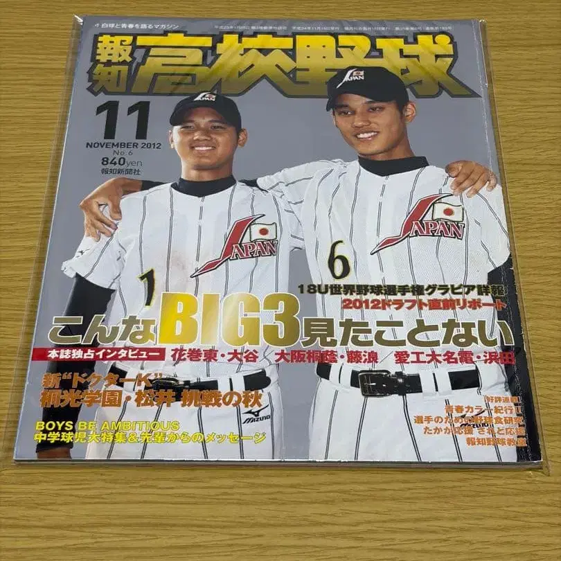 호치 고등학교 야구 2012년 11월호 오타니 쇼헤이 후지나미 신타로