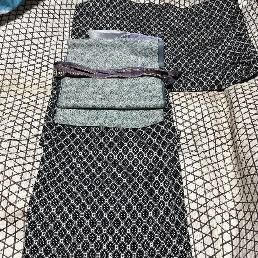 연습용 4점 (기모노, 오비, 오비 장식 천, 허리띠) 세트