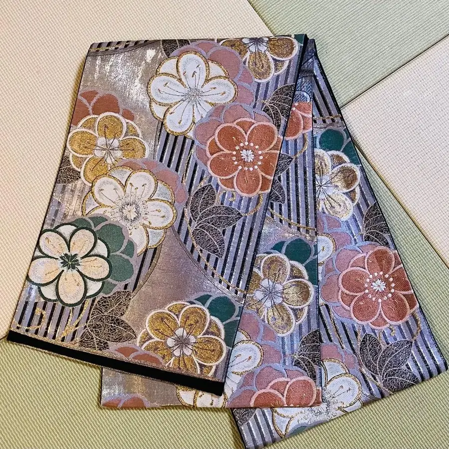 꽃무늬 후쿠로 오비 멀티 컬러 그린 오렌지 매실 후리소데용 f027