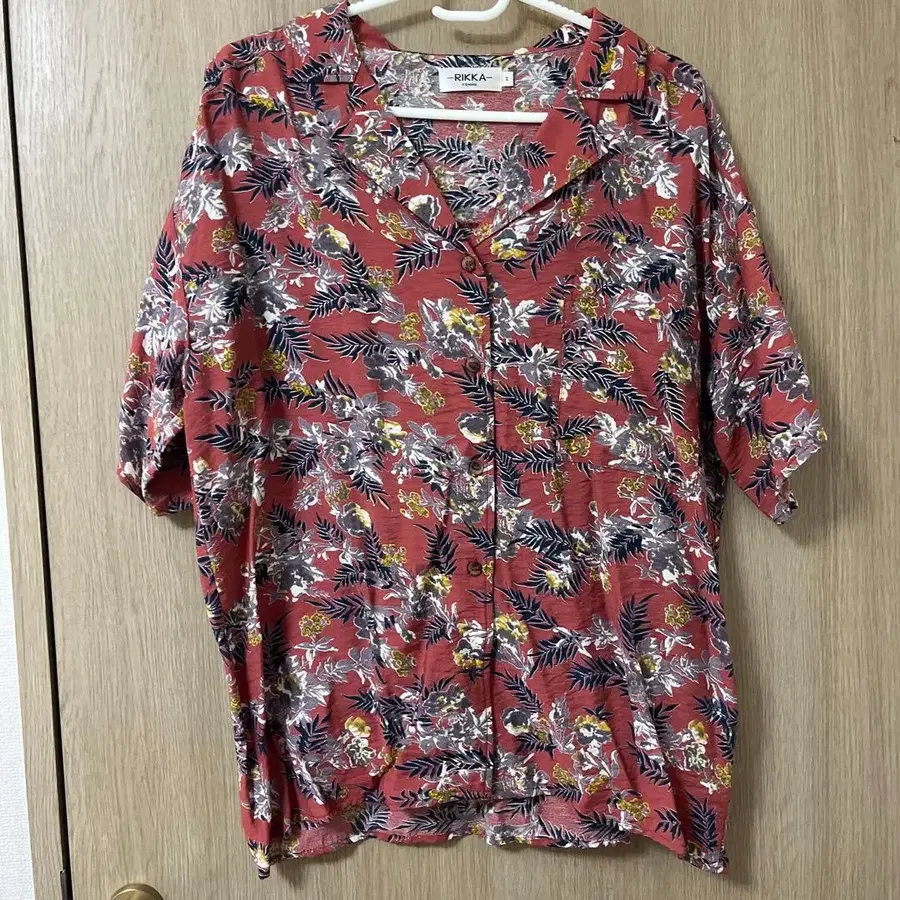 RIKKA FEMME 알로하 셔츠 반팔 셔츠 레드