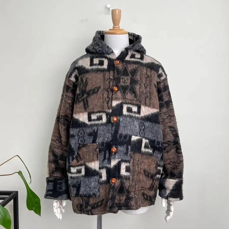 • 에콰도르제 니트 후드티 올 패턴 네이티브 빈티지 울
