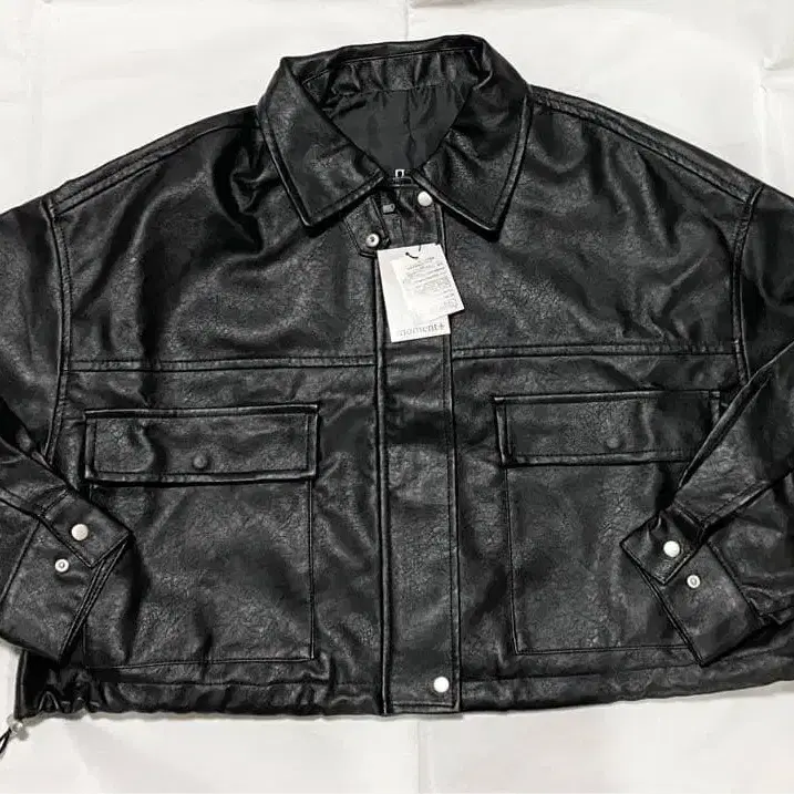 새상품 moment+ 2WAY 컬러 숏 기장 인조 가죽 블루종 자켓