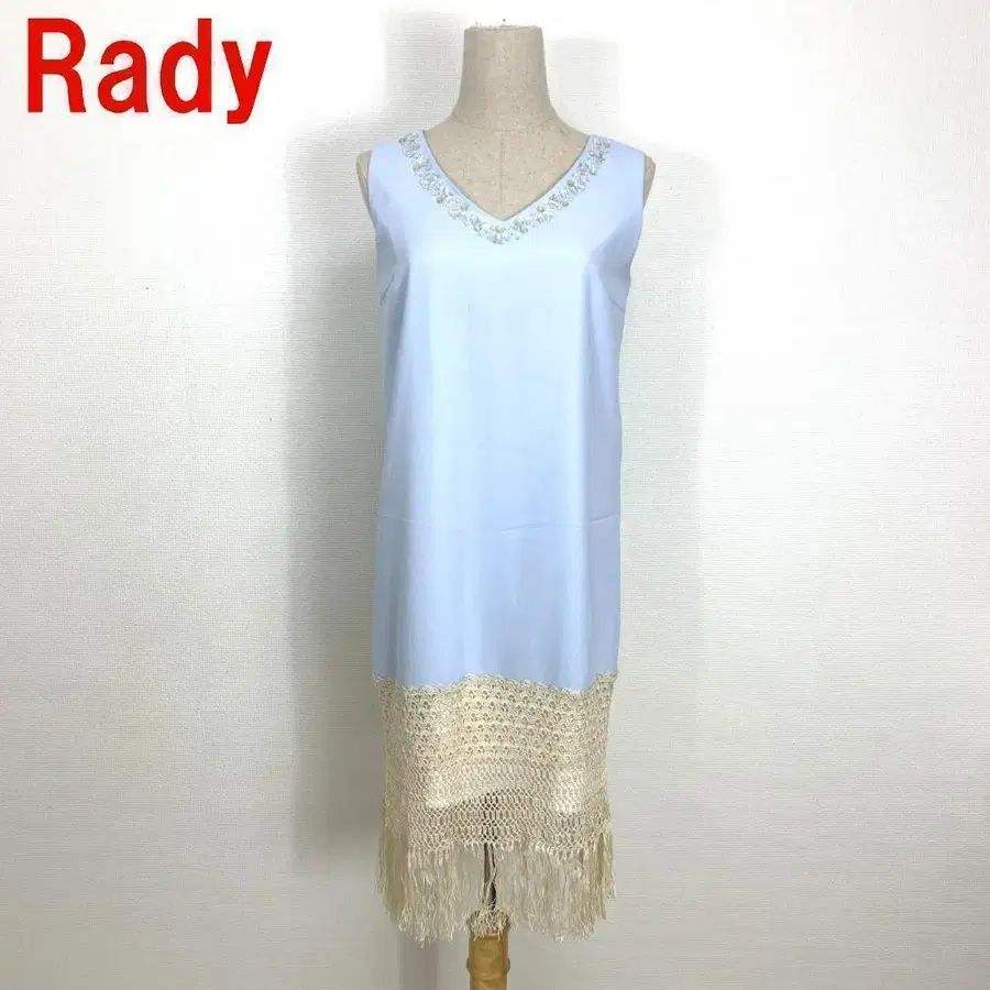 A462 레이디 롱 원피스 슬리브리스 비쥬 프린지 스카이블루 M