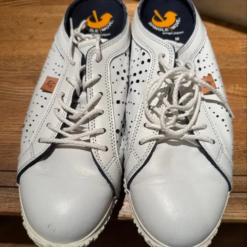 화이트 가죽에 펀칭 가공이 되어 있어,