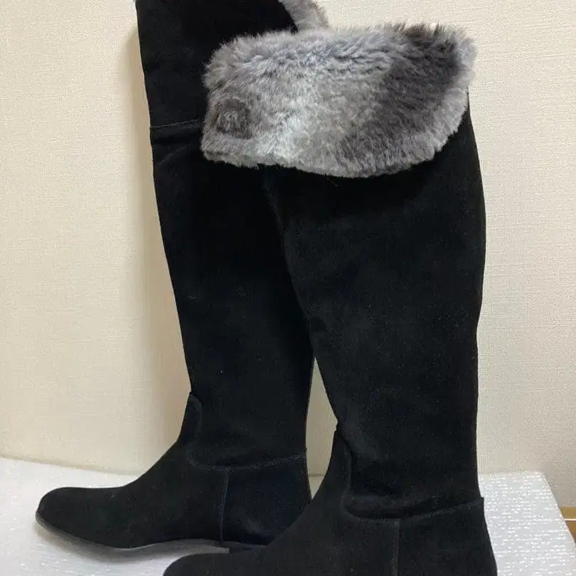 블랙스 스웨이드 롱 부츠 (퍼 포함)