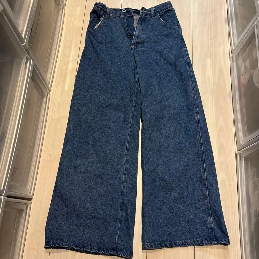nanano 다크 블루 와이드 레그 데님 팬츠