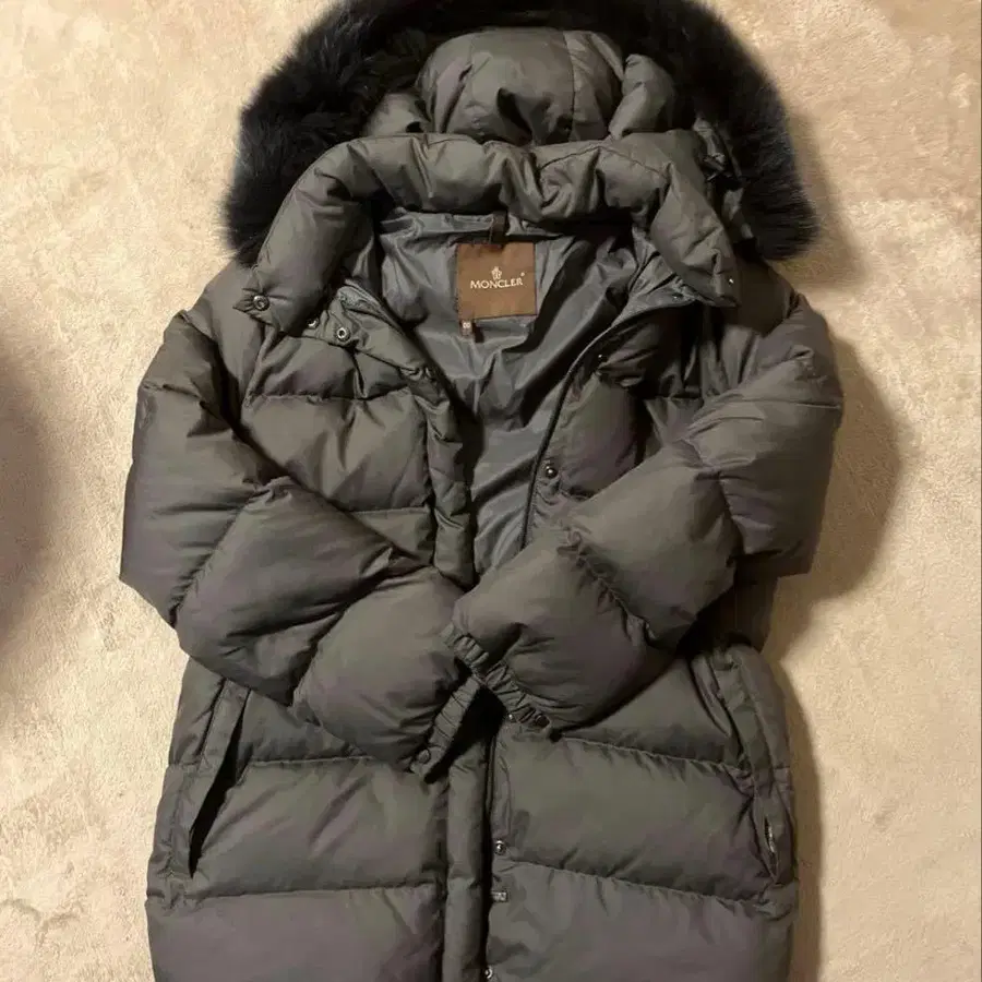 MONCLER 그레이 다운 자켓 퍼 포함
