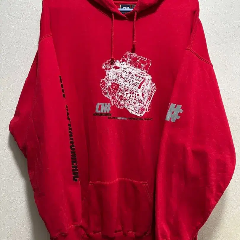 A 알파 누메 빅 사이즈 프린트 후드티 레드 XL