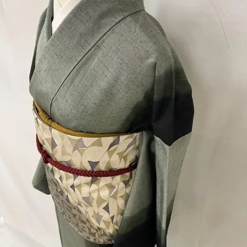 새상품급 순수 실크 이중 기모노 줄무늬 명주 단품