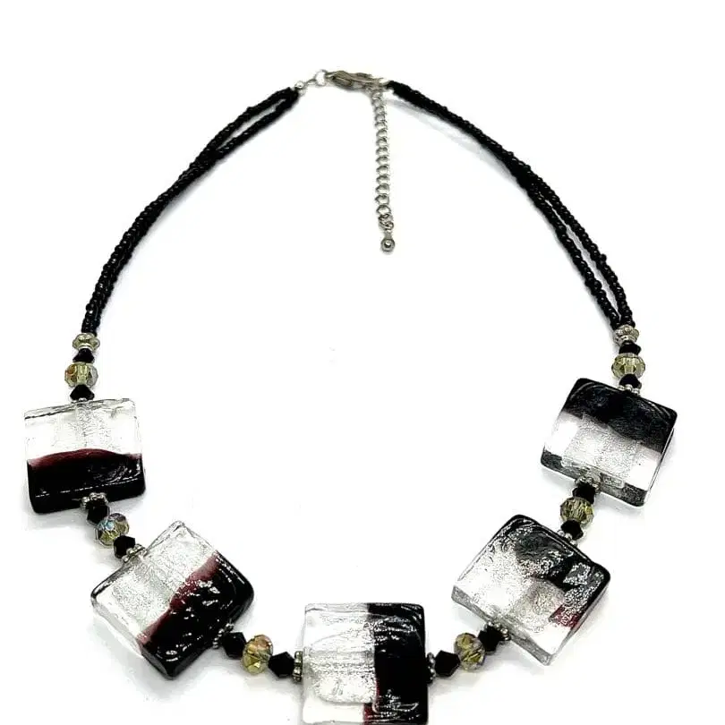 스퀘어 블랙 베네치안 유리 목걸이 기프트 박스 포함