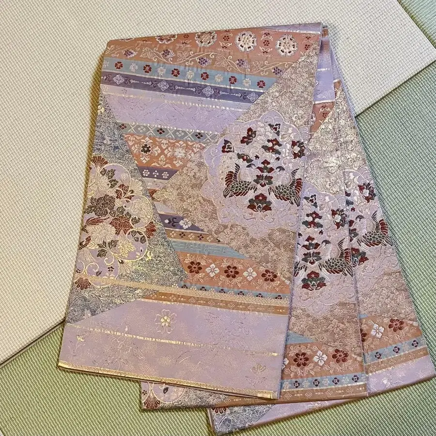 연보라색 금실 자수 후쿠로 오비 등나무색 쇼소인 m1204
