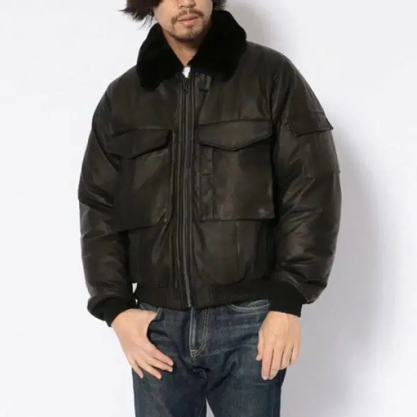 새상품급 AVIREX 아비렉스 라무 천연 가죽 다운 자켓