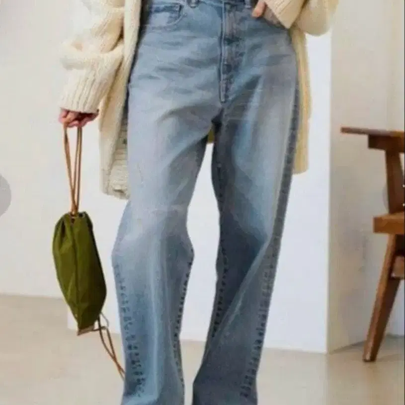 FRAMeWORK 빈티지 가공 와이드 데님 스트레이트 팬츠