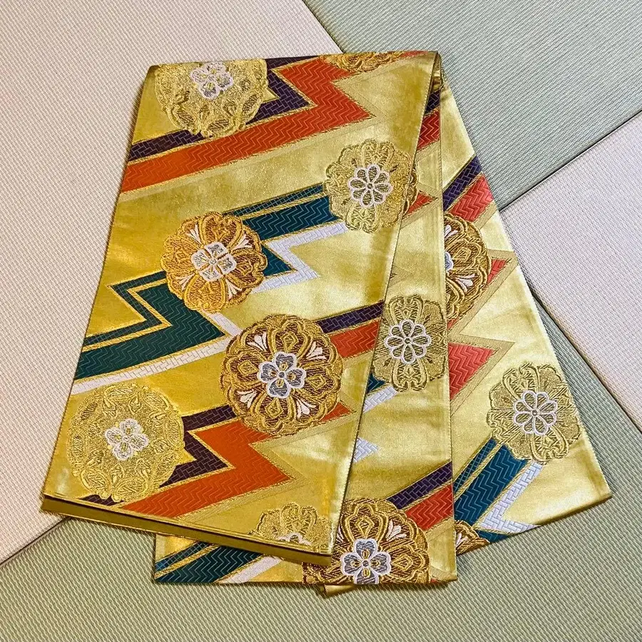 골드 컬러 꽃 무늬 후쿠로 오비 송피화문 f1201