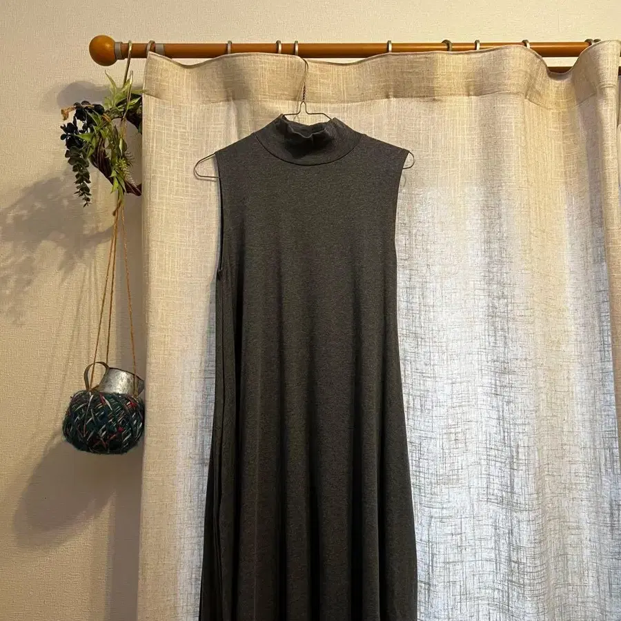 BASEMENT 다크 그레이 슬리브리스 롱 원피스