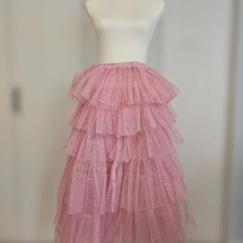 자동 번역되었어요. 원문보기라이트 핑크 컬러의 튤 소재를 사용한, 볼륨감 있는 롱 스커트입니다.
