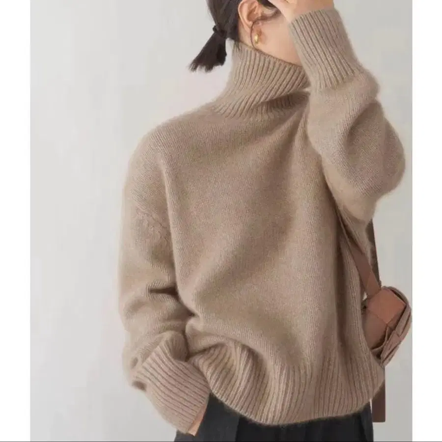 [ 미사용 새상품 ] 다크 베이지 터틀넥 스웨터