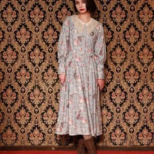 [ axes femme ] 음악과 장미 패턴 드레스풍 원피스 [ 그린 ]