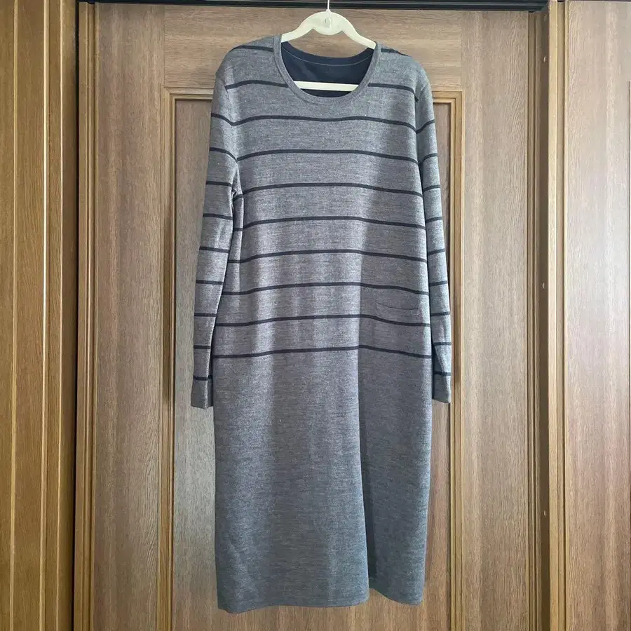 자유구 그레이와 네이비 스트라이프 워셔블 울 니트 원피스 리버서블