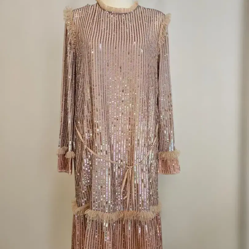 새상품급 슬리브리스 스팽글 자수 원피스 베이지 x 블랙