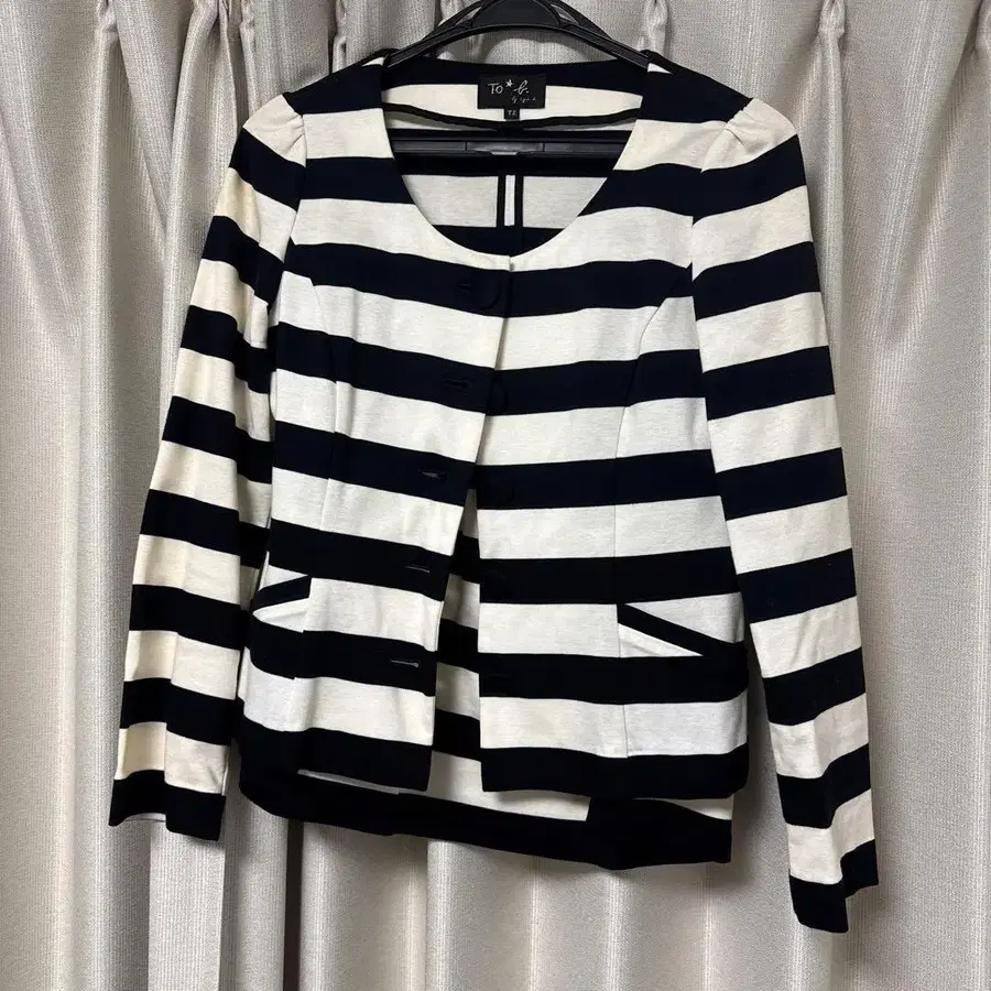 애니에스 b 노카라 스트라이프 자켓 블랙/화이트