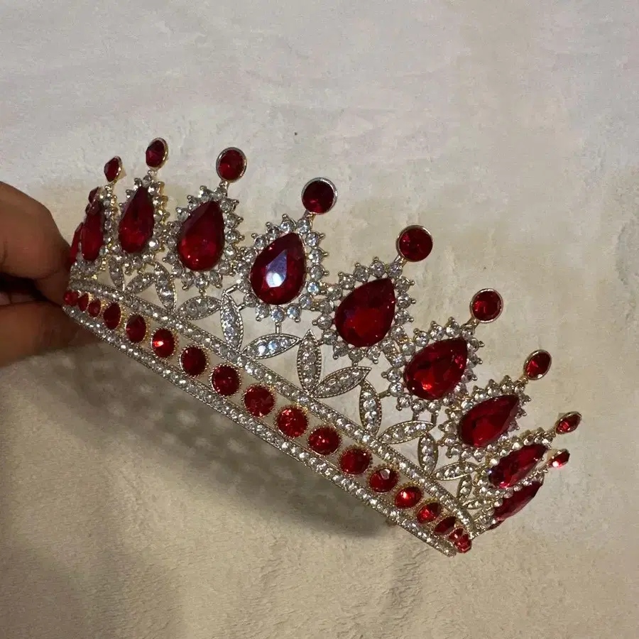 디즈니랜드 빨간색 크리스탈과 골드 컬러 티아라