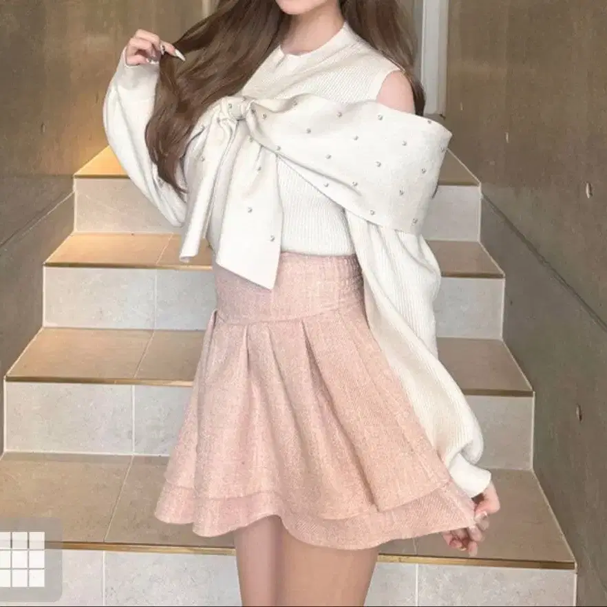 GRL 오픈 숄더 비쥬 리본 니트탑[dr784]