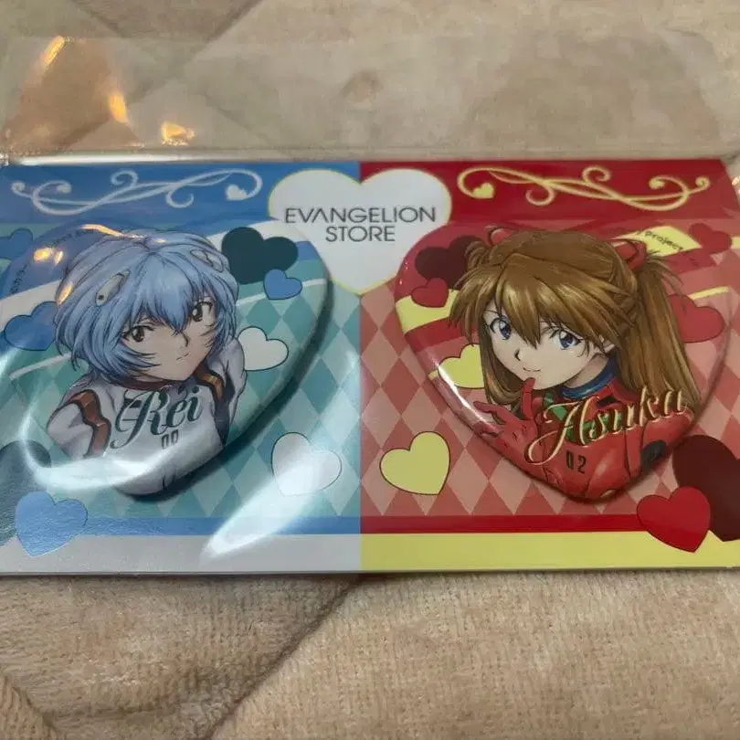 신세기 에반게리온 14주년 기념 페어 하트형 캔뱃지 아스카 아야나미 레이