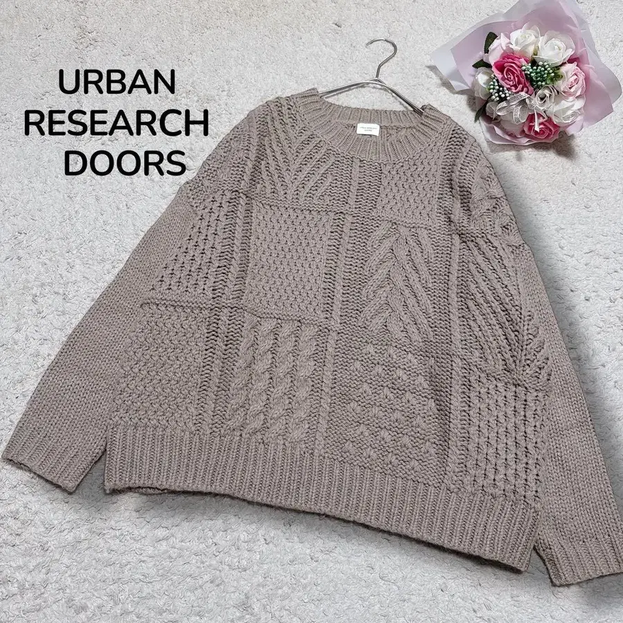 [ 어반 리서치 도어스 ] 아란 패턴 패치워크 니트 풀오버 베이지F